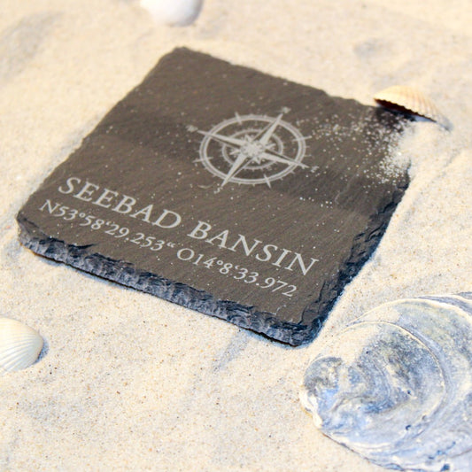 Untersetzer aus Schiefer "Seebad Bansin" | 10x10cm